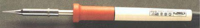 Éste es el clásico soldador de tipo lápiz, de 30w. Su calentamiento es permanente y posee una alta inercia térmica. Tanto en el momento de la soldadura como en las pausas de esta labor, el soldador permanece conectado a la corriente eléctrica. Resulta adecuado para trabajos repetitivos y numerosos.